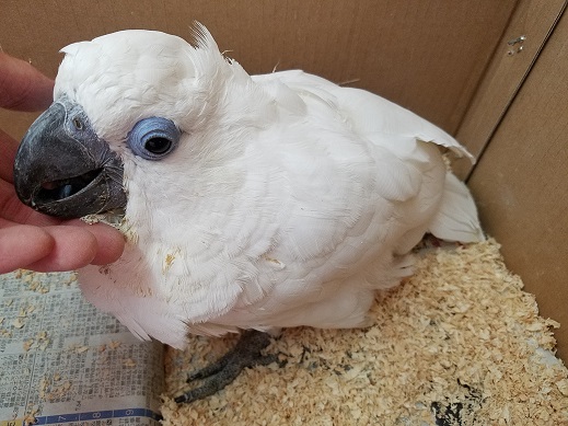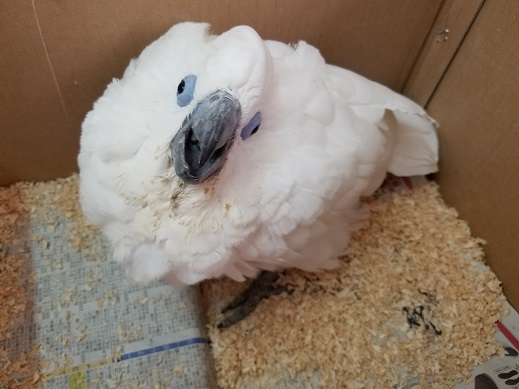 見た目的にはタイハクですが、目に青いふちがあり冠羽(トサカ)も黄色いです↓