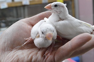 桜文鳥 1日2回ヒナ餌あげています。
